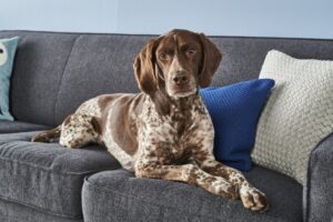 Es un perro muy cariñoso, sociable, pasea bien a la correa (aunque hay veces que por su instinto cazador va «tirando» oliendo rastros)